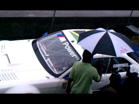 Lily Campbell Bossie }}- Dover carnival of speed 2012. Drivers in the rain waiting to start. Bossie in his BMW M3 V8 machine.